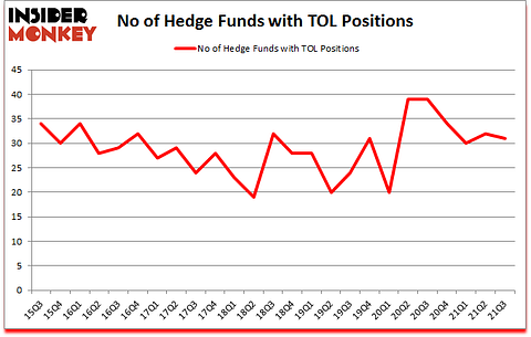 Heading into the fourth quarter of 2021, a total of 31 of the hedge funds tracked by Insider Monkey held long positions in this stock, a change of -3% from the second quarter of 2021. Below, you can check out the change in hedge fund sentiment towards TOL over the last 25 quarters. So, let’s check out which hedge funds were among the top holders of the stock and which hedge funds were making big moves.