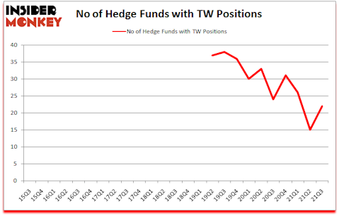 At Q3’s end, a total of 22 of the hedge funds tracked by Insider Monkey held long positions in this stock, a change of 47% from the previous quarter. Below, you can check out the change in hedge fund sentiment towards TW over the last 25 quarters. So, let’s find out which hedge funds were among the top holders of the stock and which hedge funds were making big moves.