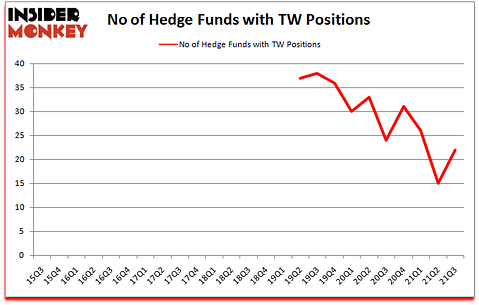 At Q3’s end, a total of 22 of the hedge funds tracked by Insider Monkey held long positions in this stock, a change of 47% from the previous quarter. Below, you can check out the change in hedge fund sentiment towards TW over the last 25 quarters. So, let’s find out which hedge funds were among the top holders of the stock and which hedge funds were making big moves.