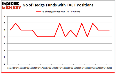At the end of the first quarter, a total of 5 of the hedge funds tracked by Insider Monkey held long positions in this stock, a change of 0% from the fourth quarter of 2019. By comparison, 4 hedge funds held shares or bullish call options in TACT a year ago. With hedge funds’ capital changing hands, there exists a select group of notable hedge fund managers who were adding to their stakes meaningfully (or already accumulated large positions).