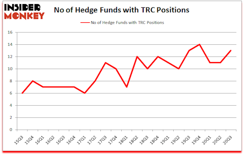Heading into the fourth quarter of 2020, a total of 13 of the hedge funds tracked by Insider Monkey were long this stock, a change of 18% from the second quarter of 2020. Below, you can check out the change in hedge fund sentiment towards TRC over the last 21 quarters. So, let’s examine which hedge funds were among the top holders of the stock and which hedge funds were making big moves.