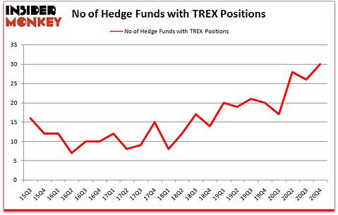 Is TREX stock a buy? Trex Company, Inc. (NYSE:TREX) was in 30 hedge funds’ portfolios at the end of the fourth quarter of 2020. The all time high for this statistic is 28. This means the bullish number of hedge fund positions in this stock currently sits at its all time high. TREX has seen an increase in hedge fund interest of late. There were 26 hedge funds in our database with TREX positions at the end of the third quarter. Our calculations also showed that TREX isn’t among the 30 most popular stocks among hedge funds (click for Q4 rankings).