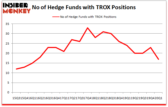 Tronox Holdings Plc (NYSE:TROX) shareholders have witnessed a decrease in hedge fund sentiment in recent months. Our calculations also showed that TROX isn’t among the 30 most popular stocks among hedge funds (click for Q1 rankings and see the video for a quick look at the top 5 stocks).