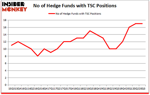 At third quarter’s end, a total of 17 of the hedge funds tracked by Insider Monkey were bullish on this stock, a change of 0% from the second quarter of 2020. The graph below displays the number of hedge funds with bullish position in TSC over the last 21 quarters. With the smart money’s capital changing hands, there exists a few noteworthy hedge fund managers who were adding to their stakes substantially (or already accumulated large positions).