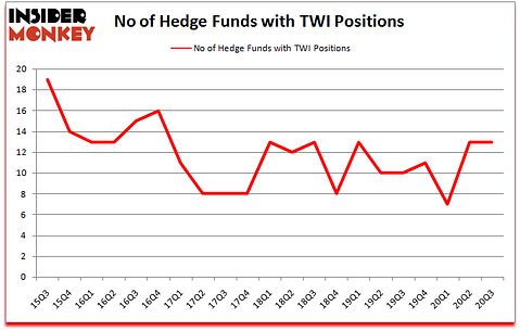 At the end of September, a total of 13 of the hedge funds tracked by Insider Monkey held long positions in this stock, a change of 0% from the previous quarter. The graph below displays the number of hedge funds with bullish position in TWI over the last 21 quarters. So, let’s check out which hedge funds were among the top holders of the stock and which hedge funds were making big moves.