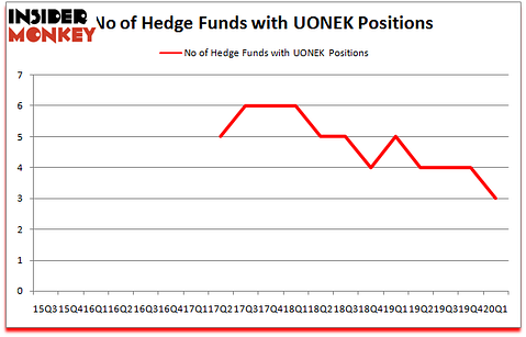 We view hedge fund activity in the stock unfavorable, but in this case there was only a single hedge fund selling its entire position: Citadel Investment Group. One hedge fund selling its entire position doesn’t always imply a bearish intent. Theoretically a hedge fund may decide to sell a promising position in order to invest the proceeds in a more promising idea. However, we don’t think this is the case in this case because none of the 750+ hedge funds tracked by Insider Monkey identified UONEK as a viable investment and initiated a position in the stock.