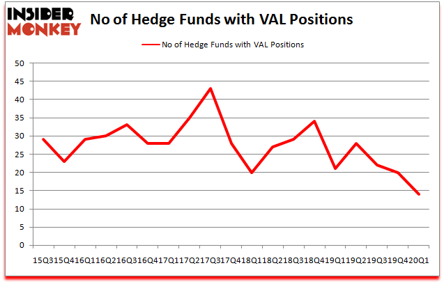 At the end of the first quarter, a total of 14 of the hedge funds tracked by Insider Monkey were bullish on this stock, a change of -30% from one quarter earlier. Below, you can check out the change in hedge fund sentiment towards VAL over the last 18 quarters. So, let’s check out which hedge funds were among the top holders of the stock and which hedge funds were making big moves.