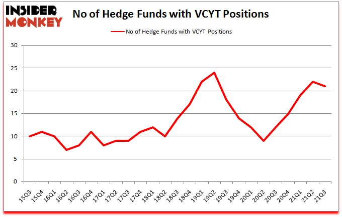 At the end of the third quarter, a total of 21 of the hedge funds tracked by Insider Monkey held long positions in this stock, a change of -5% from the previous quarter. The graph below displays the number of hedge funds with bullish position in VCYT over the last 25 quarters. So, let’s find out which hedge funds were among the top holders of the stock and which hedge funds were making big moves.
