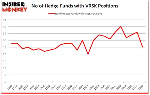 Verisk Analytics, Inc. (NASDAQ:VRSK) has experienced a decrease in hedge fund interest lately. Verisk Analytics, Inc. (NASDAQ:VRSK) was in 25 hedge funds’ portfolios at the end of the third quarter of 2021. The all time high for this statistic is 40. There were 36 hedge funds in our database with VRSK holdings at the end of June. Our calculations also showed that VRSK isn’t among the 30 most popular stocks among hedge funds (click for Q3 rankings).