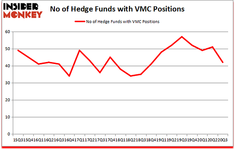 Is VMC a good stock to buy now? Vulcan Materials Company (NYSE:VMC) was in 42 hedge funds’ portfolios at the end of the third quarter of 2020. The all time high for this statistic is 57. VMC has experienced a decrease in enthusiasm from smart money in recent months. There were 51 hedge funds in our database with VMC positions at the end of the second quarter. Our calculations also showed that VMC isn’t among the 30 most popular stocks among hedge funds (click for Q3 rankings and see the video for a quick look at the top 5 stocks).