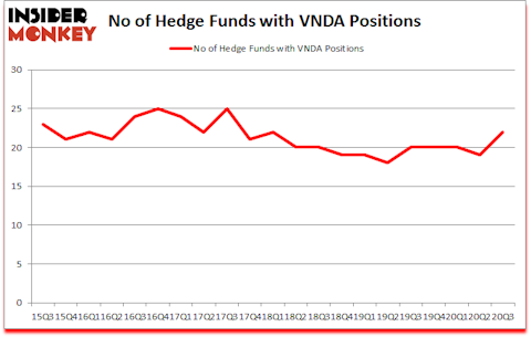 Is VNDA a good stock to buy now? Vanda Pharmaceuticals Inc. (NASDAQ:VNDA) investors should be aware of an increase in enthusiasm from smart money recently. Vanda Pharmaceuticals Inc. (NASDAQ:VNDA) was in 22 hedge funds’ portfolios at the end of the third quarter of 2020. The all time high for this statistic is 25. There were 19 hedge funds in our database with VNDA holdings at the end of June. Our calculations also showed that VNDA isn’t among the 30 most popular stocks among hedge funds (click for Q3 rankings and see the video for a quick look at the top 5 stocks).