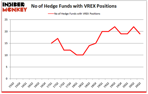 Heading into the fourth quarter of 2020, a total of 19 of the hedge funds tracked by Insider Monkey held long positions in this stock, a change of -14% from one quarter earlier. The graph below displays the number of hedge funds with bullish position in VREX over the last 21 quarters. So, let’s examine which hedge funds were among the top holders of the stock and which hedge funds were making big moves.