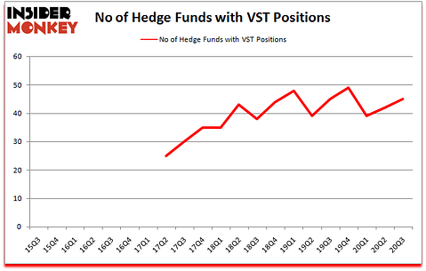 Is VST a good stock to buy now? Vistra Corp. (NYSE:VST) shareholders have witnessed an increase in support from the world’s most elite money managers recently. Vistra Corp. (NYSE:VST) was in 45 hedge funds’ portfolios at the end of the third quarter of 2020. The all time high for this statistic is 49. There were 42 hedge funds in our database with VST holdings at the end of June. Our calculations also showed that VST isn’t among the 30 most popular stocks among hedge funds (click for Q3 rankings and see the video for a quick look at the top 5 stocks).