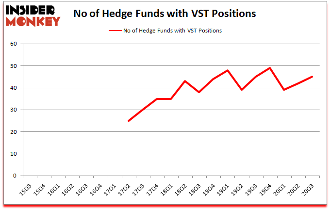 Is VST a good stock to buy now? Vistra Corp. (NYSE:VST) shareholders have witnessed an increase in support from the world’s most elite money managers recently. Vistra Corp. (NYSE:VST) was in 45 hedge funds’ portfolios at the end of the third quarter of 2020. The all time high for this statistic is 49. There were 42 hedge funds in our database with VST holdings at the end of June. Our calculations also showed that VST isn’t among the 30 most popular stocks among hedge funds (click for Q3 rankings and see the video for a quick look at the top 5 stocks).