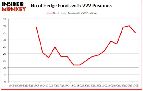 At third quarter’s end, a total of 35 of the hedge funds tracked by Insider Monkey were bullish on this stock, a change of -13% from one quarter earlier. The graph below displays the number of hedge funds with bullish position in VVV over the last 21 quarters. So, let’s examine which hedge funds were among the top holders of the stock and which hedge funds were making big moves.