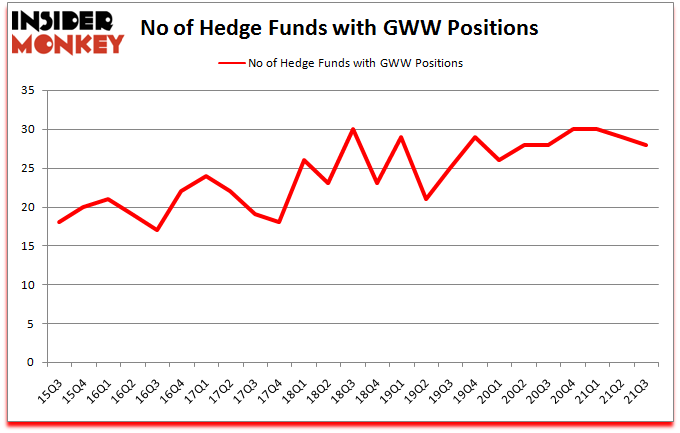 Is GWW a good stock to buy? W.W. Grainger, Inc. (NYSE:GWW) was in 28 hedge funds’ portfolios at the end of the third quarter of 2021. The all time high for this statistic is 30. GWW shareholders have witnessed a decrease in support from the world’s most elite money managers of late. There were 29 hedge funds in our database with GWW positions at the end of the second quarter. Our calculations also showed that GWW isn’t among the 30 most popular stocks among hedge funds (click for Q3 rankings).