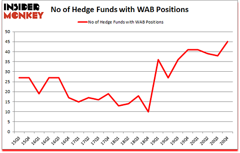 Is WAB stock a buy or sell? Westinghouse Air Brake Technologies Corporation (NYSE:WAB) investors should pay attention to an increase in support from the world’s most elite money managers in recent months. Westinghouse Air Brake Technologies Corporation (NYSE:WAB) was in 45 hedge funds’ portfolios at the end of the fourth quarter of 2020. The all time high for this statistic is 41. This means the bullish number of hedge fund positions in this stock currently sits at its all time high. There were 38 hedge funds in our database with WAB holdings at the end of September. Our calculations also showed that WAB isn’t among the 30 most popular stocks among hedge funds (click for Q4 rankings).