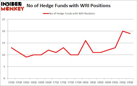 At the end of the third quarter, a total of 19 of the hedge funds tracked by Insider Monkey were bullish on this stock, a change of -5% from the previous quarter. The graph below displays the number of hedge funds with bullish position in WRI over the last 17 quarters. So, let’s examine which hedge funds were among the top holders of the stock and which hedge funds were making big moves.