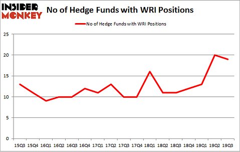 At the end of the third quarter, a total of 19 of the hedge funds tracked by Insider Monkey were bullish on this stock, a change of -5% from the previous quarter. The graph below displays the number of hedge funds with bullish position in WRI over the last 17 quarters. So, let’s examine which hedge funds were among the top holders of the stock and which hedge funds were making big moves.