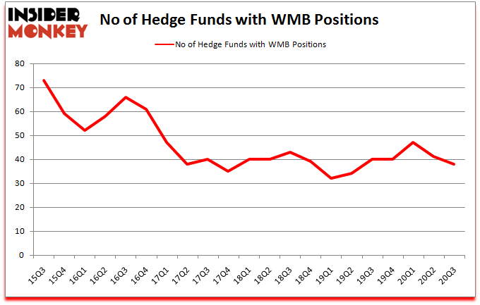 Is WMB a good stock to buy? The Williams Companies, Inc. (NYSE:WMB) investors should be aware of a decrease in enthusiasm from smart money lately. The Williams Companies, Inc. (NYSE:WMB) was in 38 hedge funds’ portfolios at the end of September. The all time high for this statistic is 73. There were 41 hedge funds in our database with WMB positions at the end of the second quarter. Our calculations also showed that WMB isn’t among the 30 most popular stocks among hedge funds (click for Q3 rankings and see the video for a quick look at the top 5 stocks).