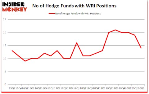 At the end of September, a total of 14 of the hedge funds tracked by Insider Monkey held long positions in this stock, a change of -26% from one quarter earlier. By comparison, 21 hedge funds held shares or bullish call options in WRI a year ago. So, let’s find out which hedge funds were among the top holders of the stock and which hedge funds were making big moves.