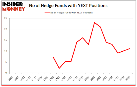 At Insider Monkey we scour multiple sources to uncover the next great investment idea. For example, Federal Reserve has been creating trillions of dollars electronically to keep the interest rates near zero. We believe this will lead to inflation and boost real estate prices. So, we recommended this real estate stock to our monthly premium newsletter subscribers. We go through lists like the 15 best blue chip stocks to pick the best large-cap stocks to buy. Even though we recommend positions in only a tiny fraction of the companies we analyze, we check out as many stocks as we can. We read hedge fund investor letters and listen to stock pitches at hedge fund conferences. You can subscribe to our free daily newsletter on our website. With all of this in mind let’s view the fresh hedge fund action encompassing Yext, Inc. (NYSE:YEXT).