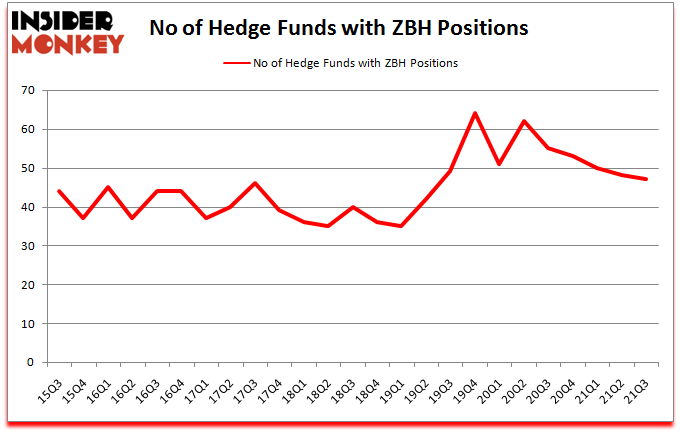 Zimmer Biomet Holdings Inc (NYSE:ZBH) has experienced a decrease in support from the world’s most elite money managers in recent months. Zimmer Biomet Holdings Inc (NYSE:ZBH) was in 47 hedge funds’ portfolios at the end of the third quarter of 2021. The all time high for this statistic is 64. There were 48 hedge funds in our database with ZBH positions at the end of the second quarter. Our calculations also showed that ZBH isn’t among the 30 most popular stocks among hedge funds (click for Q3 rankings).