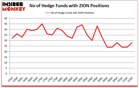 Is ZION a good stock to buy? Zions Bancorporation, National Association (NASDAQ:ZION) was in 28 hedge funds’ portfolios at the end of the third quarter of 2021. The all time high for this statistic is 45. ZION has seen an increase in hedge fund interest of late. There were 24 hedge funds in our database with ZION positions at the end of the second quarter. Our calculations also showed that ZION isn’t among the 30 most popular stocks among hedge funds (click for Q3 rankings).