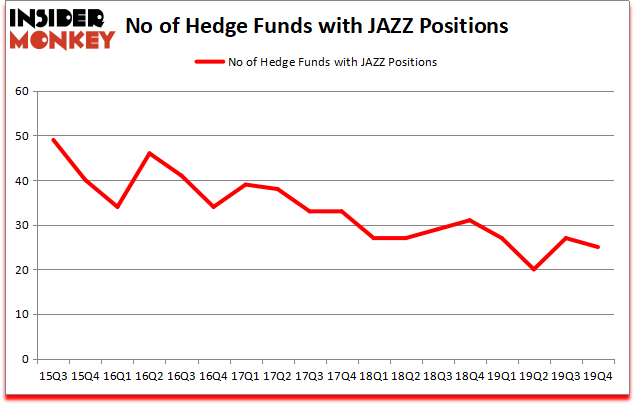 Heading into the first quarter of 2020, a total of 25 of the hedge funds tracked by Insider Monkey were bullish on this stock, a change of -7% from the previous quarter. Below, you can check out the change in hedge fund sentiment towards JAZZ over the last 18 quarters. So, let’s check out which hedge funds were among the top holders of the stock and which hedge funds were making big moves.