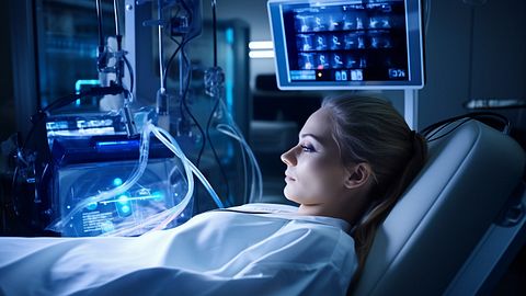 A skilled surgeon surrounded by a team of medical professionals performing a Transcatheter Heart Valve Replacement.