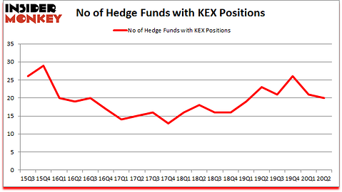 Heading into the third quarter of 2020, a total of 20 of the hedge funds tracked by Insider Monkey held long positions in this stock, a change of -5% from the previous quarter. Below, you can check out the change in hedge fund sentiment towards KEX over the last 20 quarters. So, let’s see which hedge funds were among the top holders of the stock and which hedge funds were making big moves.