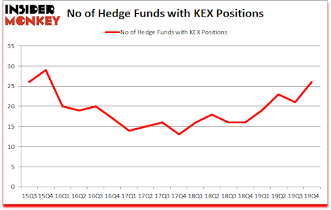Heading into the first quarter of 2020, a total of 26 of the hedge funds tracked by Insider Monkey were long this stock, a change of 24% from the third quarter of 2019. The graph below displays the number of hedge funds with bullish position in KEX over the last 18 quarters. With the smart money’s sentiment swirling, there exists a select group of notable hedge fund managers who were increasing their stakes significantly (or already accumulated large positions).