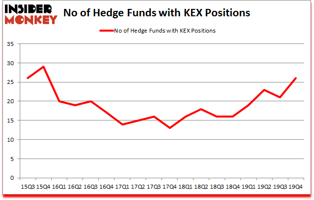 Heading into the first quarter of 2020, a total of 26 of the hedge funds tracked by Insider Monkey were long this stock, a change of 24% from the third quarter of 2019. The graph below displays the number of hedge funds with bullish position in KEX over the last 18 quarters. With the smart money’s sentiment swirling, there exists a select group of notable hedge fund managers who were increasing their stakes significantly (or already accumulated large positions).