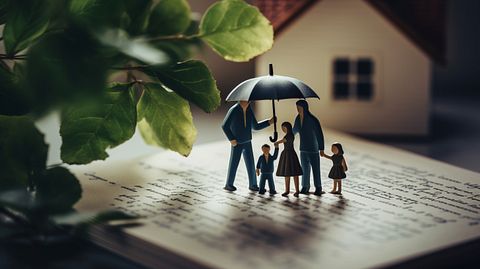 A close-up of a family receiving life insurance coverage documents.