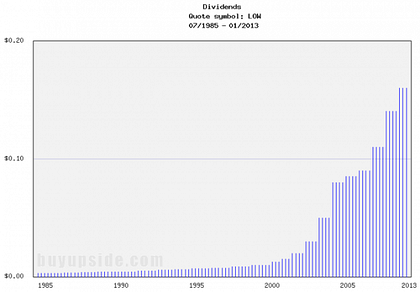 4). Dividend Growth: Since implementing their dividend program in 1961 the company has consistently raised its dividend payouts, and should continue to do so into the future as revenue increases and the company currently only possesses a dividend payout ratio of 37.1%