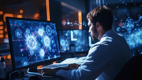 A biological researcher studying the interaction of GABAA receptors on a computer screen.