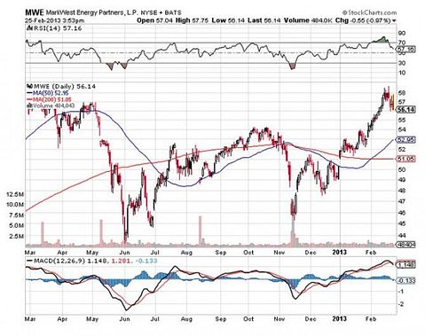 A SWOT analysis is a look at a company’s strengths, weaknesses, opportunities, and threats, and is a tremendous way to gain a detailed and thorough perspective on a company and its future. As 2013 begins, I would like to look at a stable master limited partnership that has trounced the overall market over the past decade: Markwest Energy Partners LP (NYSE:MWE).