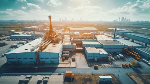 An aerial view of a factory specializing in the production of raw materials.