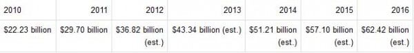 Yet GDP growth can be deceptive – Brazil’s online retail sales actually grew 20% between 2010 and 2011 as GDP declined. In the first half of 2012, e-commerce sales grew by 21%. Here are the past and projected figures of Latin American e-commerce growth, between 2010 and 2016.