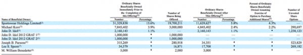 The main sellers are Sportswear Holdings Limited, Michael Kors, and John D. Idol. Sportswear is selling an incredible 19.7 million shares prior to the over-allotment amount and could reduce the ownership stake to 4.3% from 15.6%. Even more importantly is the decision by CCO and namesake, Michael Kors, to unload at least 3 million shares and potentially reduce his stake from only 3.9% to as low as 2.2%. See table below for more details: