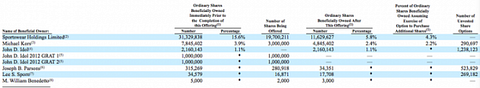 The main sellers are Sportswear Holdings Limited, Michael Kors, and John D. Idol. Sportswear is selling an incredible 19.7 million shares prior to the over-allotment amount and could reduce the ownership stake to 4.3% from 15.6%. Even more importantly is the decision by CCO and namesake, Michael Kors, to unload at least 3 million shares and potentially reduce his stake from only 3.9% to as low as 2.2%. See table below for more details: