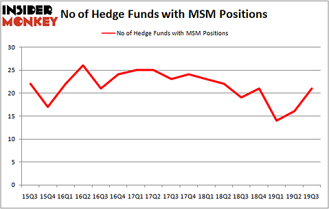 MSC Industrial Direct Co Inc (NYSE:MSM) was in 21 hedge funds’ portfolios at the end of the third quarter of 2019. MSM has experienced an increase in hedge fund interest recently. There were 16 hedge funds in our database with MSM holdings at the end of the previous quarter. Our calculations also showed that MSM isn’t among the 30 most popular stocks among hedge funds (click for Q3 rankings and see the video below for Q2 rankings).