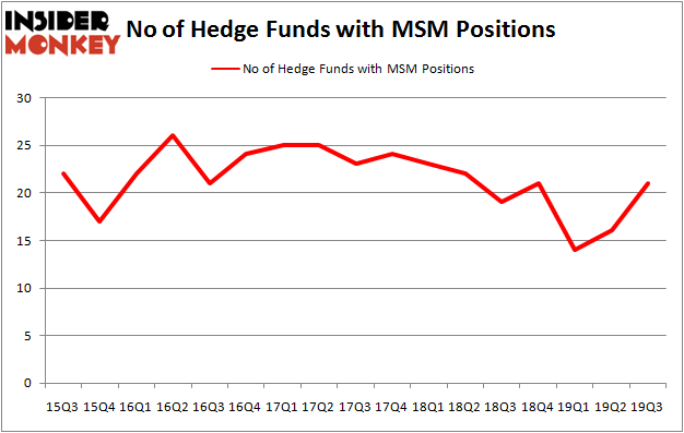 At the end of the third quarter, a total of 21 of the hedge funds tracked by Insider Monkey were long this stock, a change of 31% from the second quarter of 2019. Below, you can check out the change in hedge fund sentiment towards MSM over the last 17 quarters. With hedgies’ sentiment swirling, there exists a select group of key hedge fund managers who were adding to their stakes significantly (or already accumulated large positions).