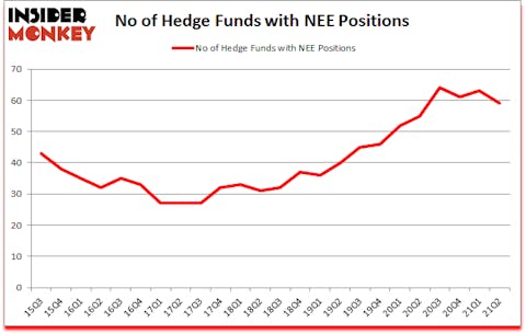 NextEra Energy, Inc. (NYSE:NEE) shareholders have witnessed a decrease in hedge fund interest recently. NextEra Energy, Inc. (NYSE:NEE) was in 59 hedge funds’ portfolios at the end of the second quarter of 2021. The all time high for this statistic is 64. Our calculations also showed that NEE isn’t among the 30 most popular stocks among hedge funds (click for Q2 rankings).
