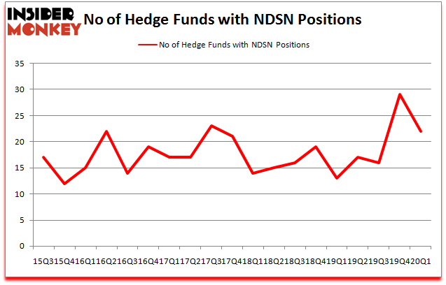 At Q1’s end, a total of 22 of the hedge funds tracked by Insider Monkey were bullish on this stock, a change of -24% from one quarter earlier. By comparison, 13 hedge funds held shares or bullish call options in NDSN a year ago. So, let’s check out which hedge funds were among the top holders of the stock and which hedge funds were making big moves.