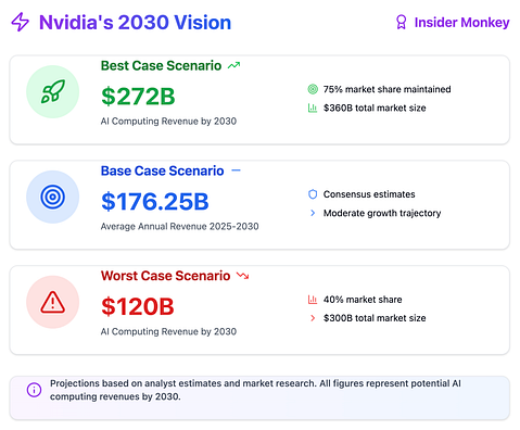 However, not all analysts are quite as bullish. The consensus among analysts suggests that Nvidia will generate roughly $1.29 trillion in cumulative revenue between fiscal years 2025 and 2030. While still an impressive figure, it falls short of the most optimistic projections.
