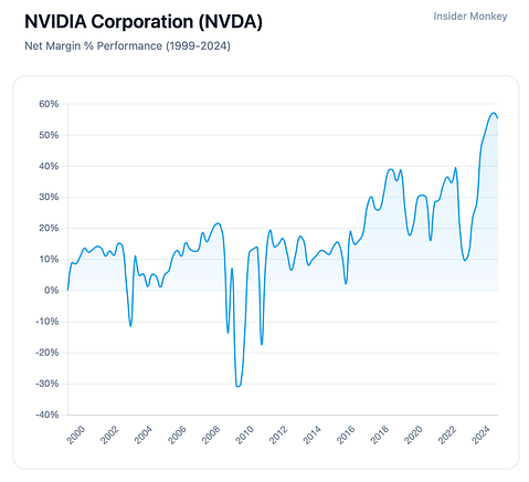 If the AI segment’s growth starts to falter, the market will have a very hard time justifying this premium. Moreover, any slowdown in the development of AI models or a better GPU chip by a competitor could erode Nvidia’s margins quickly. Wall Street is only paying 36 times trailing sales due to its sky-high margins. However, this will not be the case if margins take a dive. This has happened before during previous downturns.