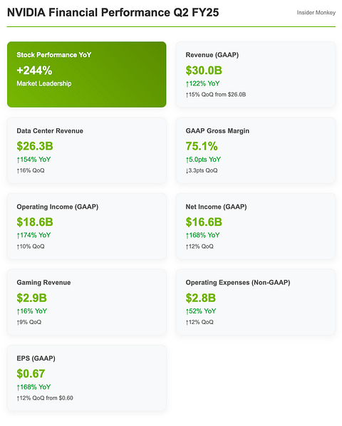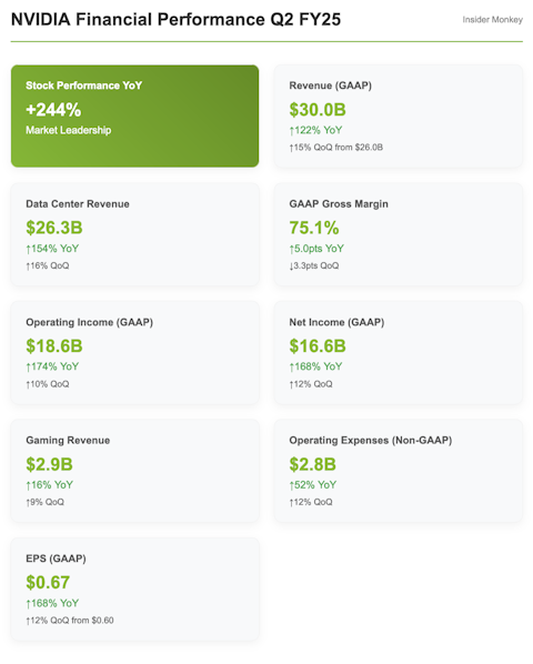 Compute & Networking is Nvidia’s largest and fastest-growing segment. It generated $22.68 billion in revenues in Q1 fiscal 2025, up by an extraordinary 5.1X year-on-year. The segment further accelerated in Q2 fiscal 2025 and reached $26.3 billion in revenue. This marked a 16% sequential increase and a staggering 154% year-over-year growth.