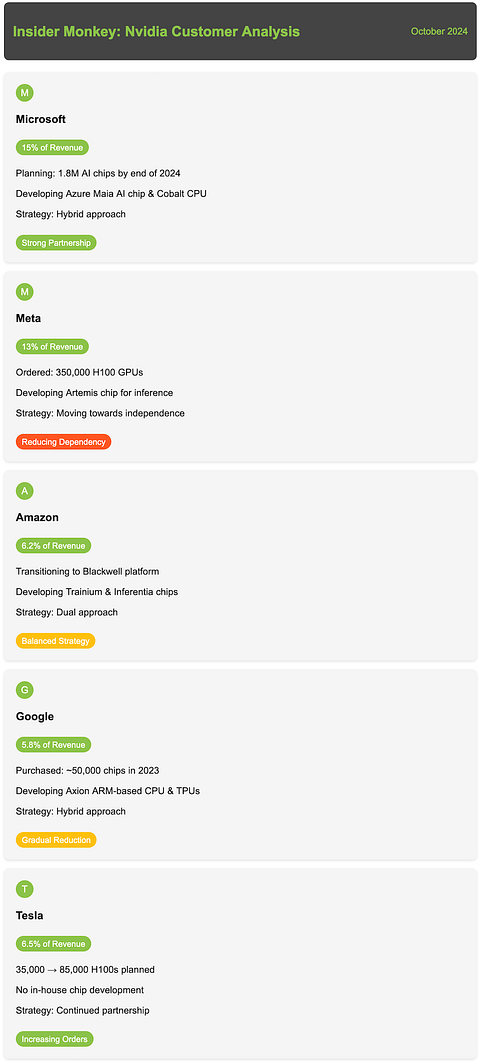 Another catalyst that is quite under-mentioned is the reliance of Nvidia on a few key customers. This level of customer concentration is considered “highly unusual” for a company of Nvidia’s size. Most other mega-cap companies don’t have even a single customer accounting for 10% of revenue. Let’s look at what each customer is trying to do: