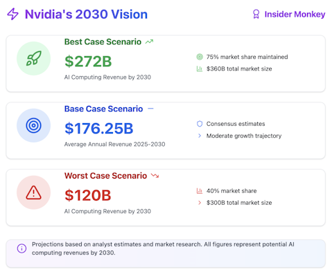Looking specifically at Nvidia, Bank of America analyst Vivek Arya believes that Nvidia can capture a significant portion of the AI market. He estimates that with Nvidia maintaining its market share, this translates to $272 billion in AI computing revenues for Nvidia by 2030. For reference, Nvidia’s total revenue for fiscal year 2024 was $61 billion.